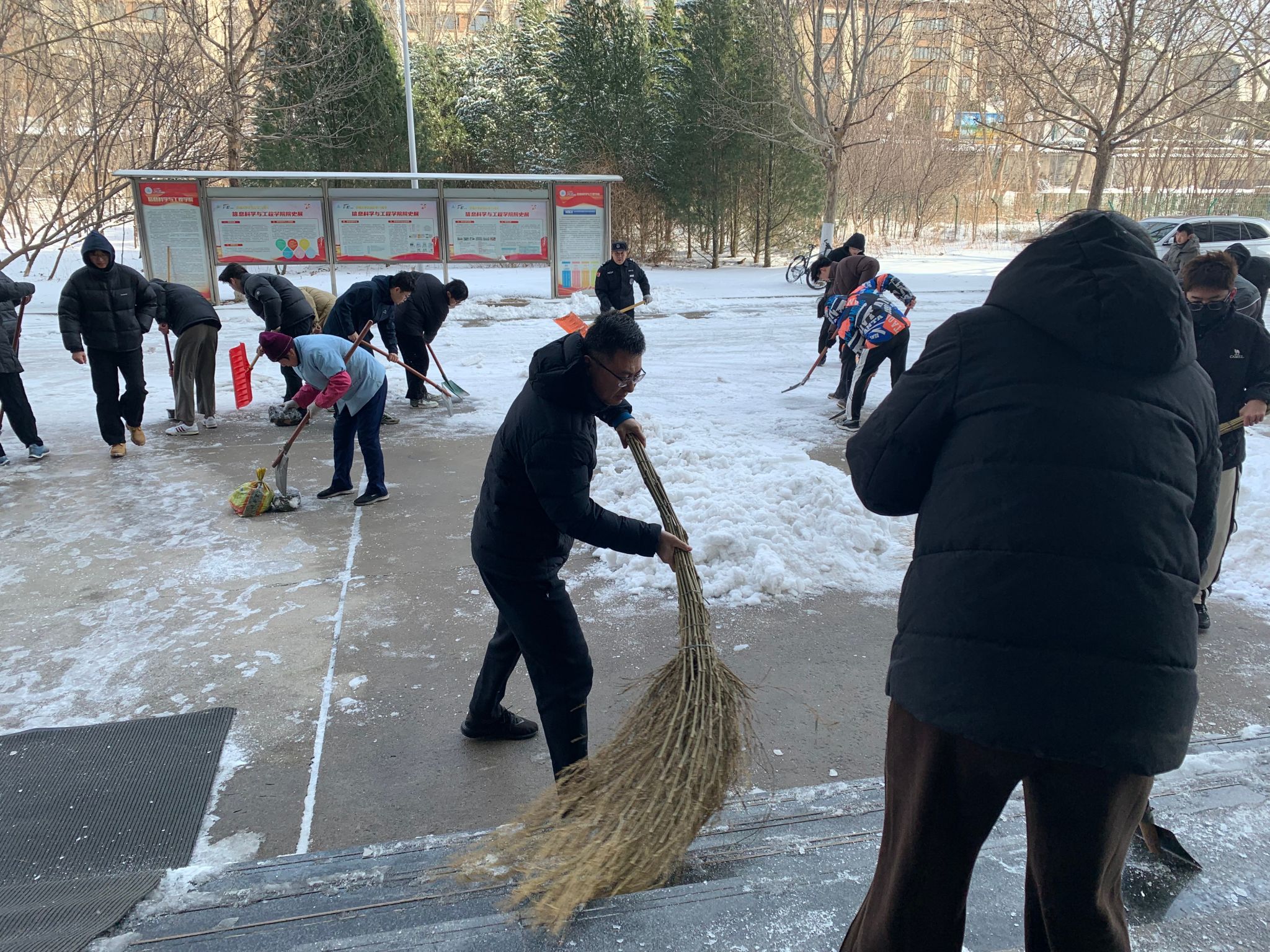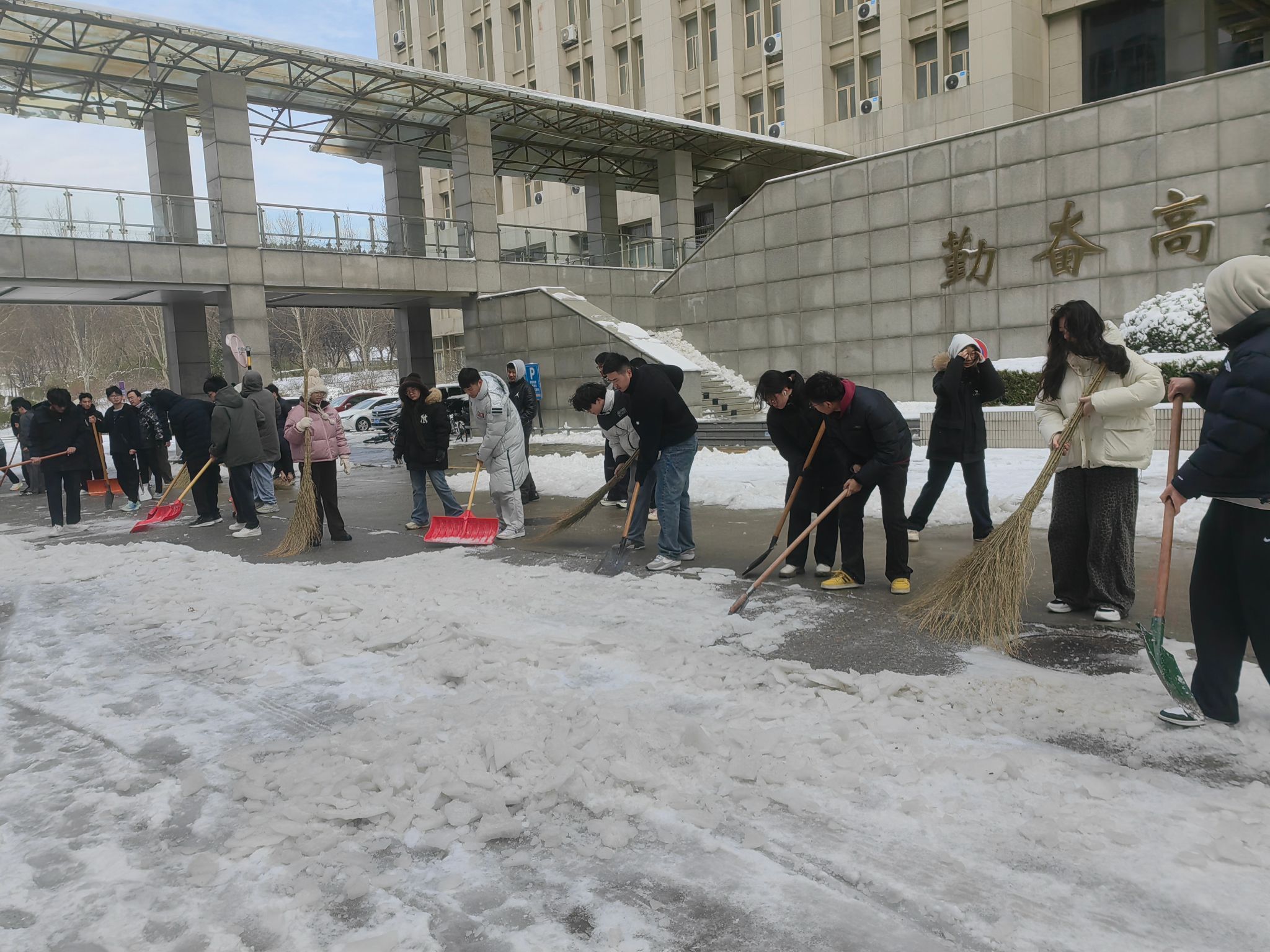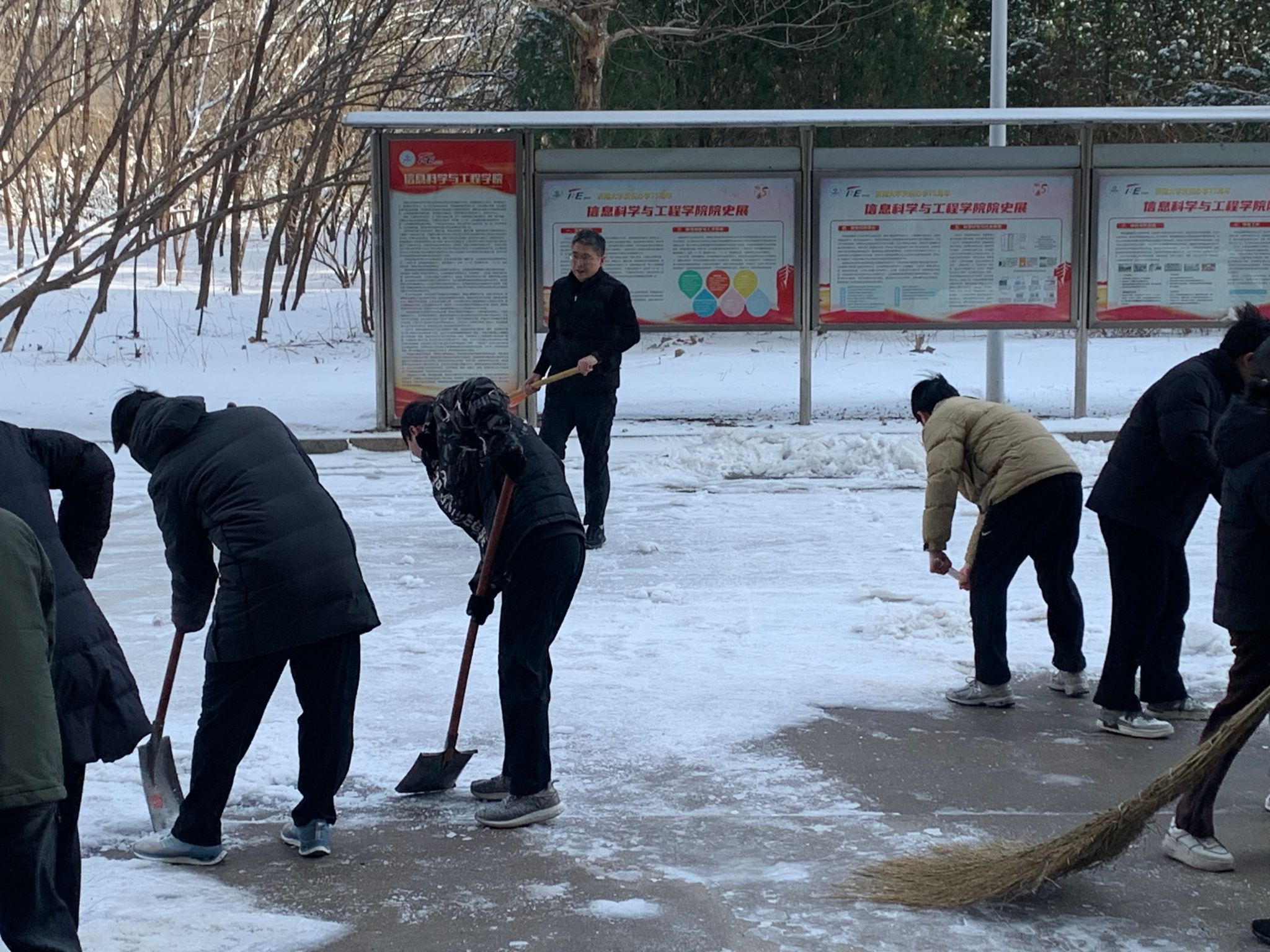 师生党员积极开展扫雪除冰志愿服务活动,为广大师生安全出行保驾护航。