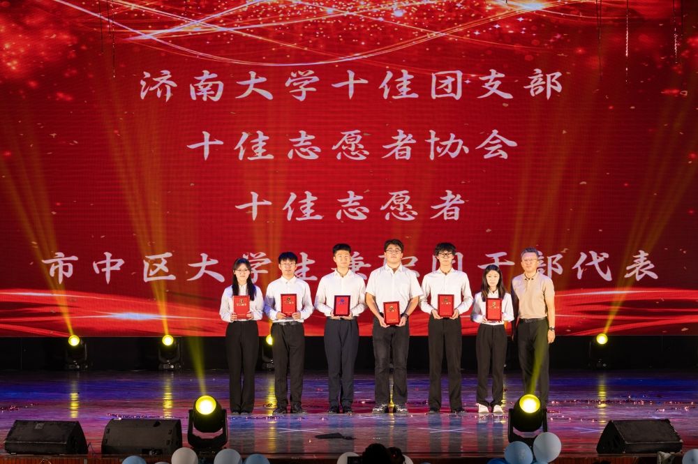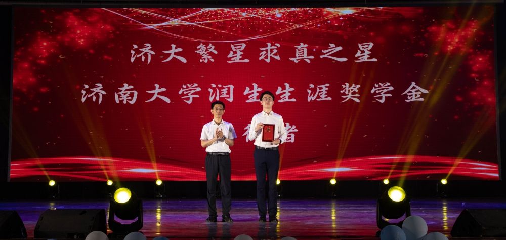 对表现突出的“朋辈之星”学生代表进行表彰。续铁为宋健奖学金获得者颁奖,李强为济大繁星·求真之星、济南大学生润生生涯奖学金获得者颁奖,党委保卫部、安全管理处部(处)长李荣光为国家奖学金获得者代表颁奖,教务处处长、教学质量与评估办公室主任、招生办公室主任陈贞翔为科创竞赛国家级奖励学生代表颁奖,校团委书记胡春毅为济南大学十佳团支部、十佳志愿者协会、十佳志愿者、市中区大学生兼职团干部代表颁奖,党委宣传部文化中心主任赵华磊和党委学生工作部(处)副部(处)长马杰共同为优秀毕业生代表颁奖。