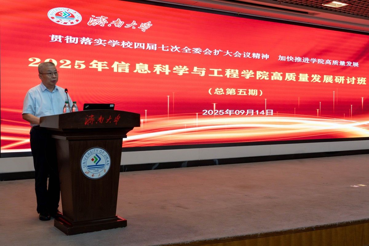 近年来在人才培养、学科专业建设等方面取得的成绩。他对全体教师提出五点要求:一是要交叉融合、引领前沿,构建信息学部发展新范式;二是要聚焦方向、汇智聚力,深化计算机博士点内涵建设;三是要立德树人、融合创新,构建一体化卓越育人生态;四是要聚焦产业、攻坚克难,打造不可替代的学科优势;五是要创新机制、激发活力,营造追求卓越的内生发展文化。他希望全体教师进一步提高政治站位,统一思想认识,紧紧围绕学校“冲一流、进百强”的总体目标,深入开展系统性调研,精准识别高质量发展进程中的核心瓶颈与重大挑战,积极探索创新突破的有效路径与实施方案,以务实行动推动性吧