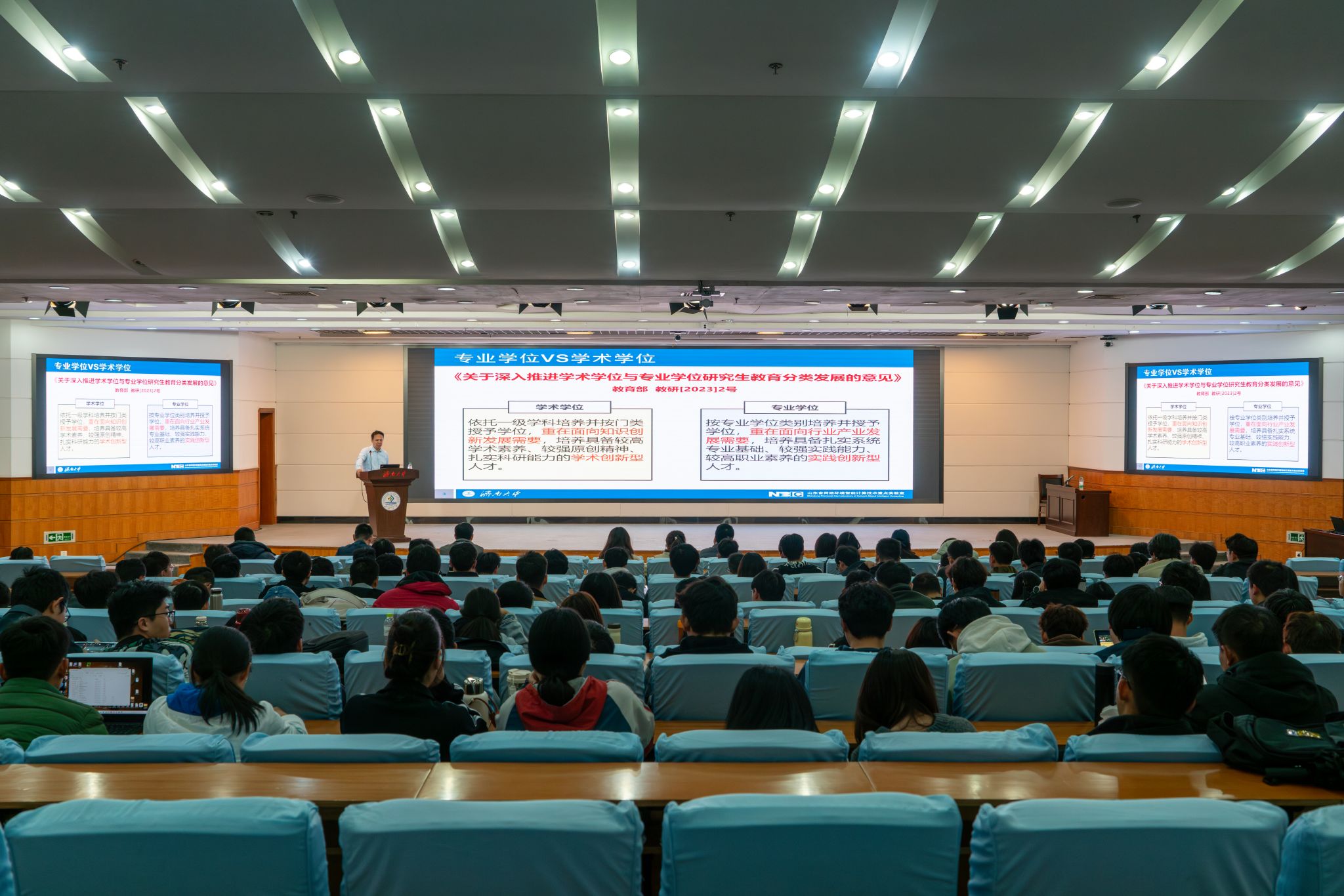 近七届毕业生去向落实情况,深入分析了当前就业形势,强调学风建设在研究生阶段的重要意义。最后,他勉励研究生要做好个人发展与学业规划,珍惜研究生学习机会,开启能力素质发展的自我成长成才之路,努力成为堪当民族复兴重任的时代新人。