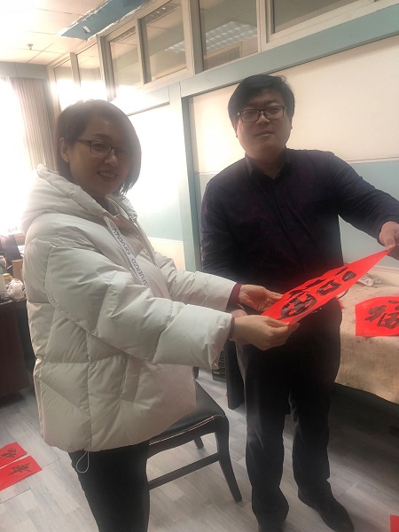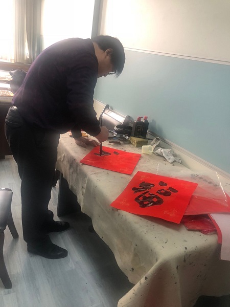 正处级组织员季竹君发挥专业特长,用十几种字体给师生送上祝福,送去温暖。一个个福字跃然纸上,一副副春联寓意着对新春美好的憧憬和期望。