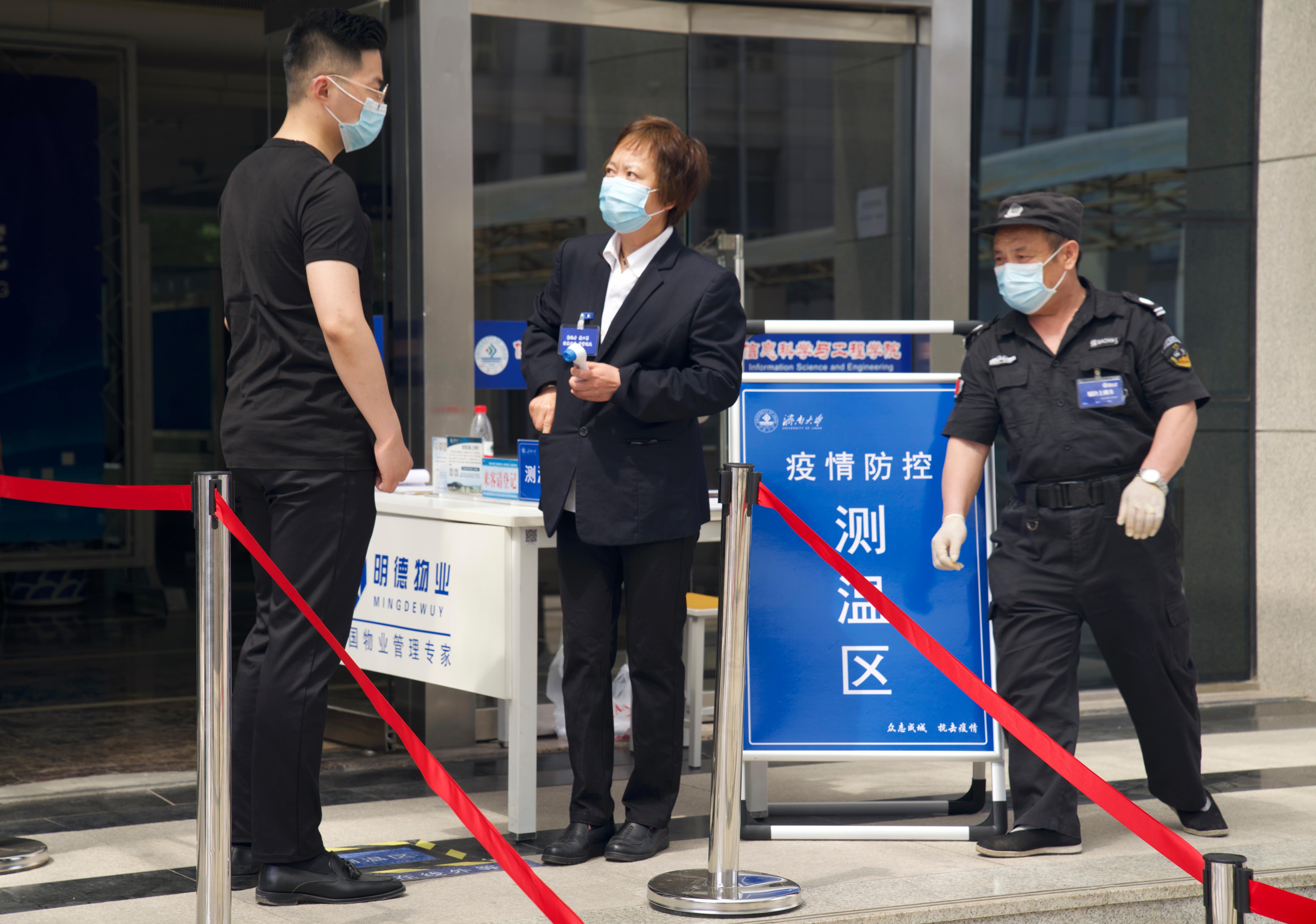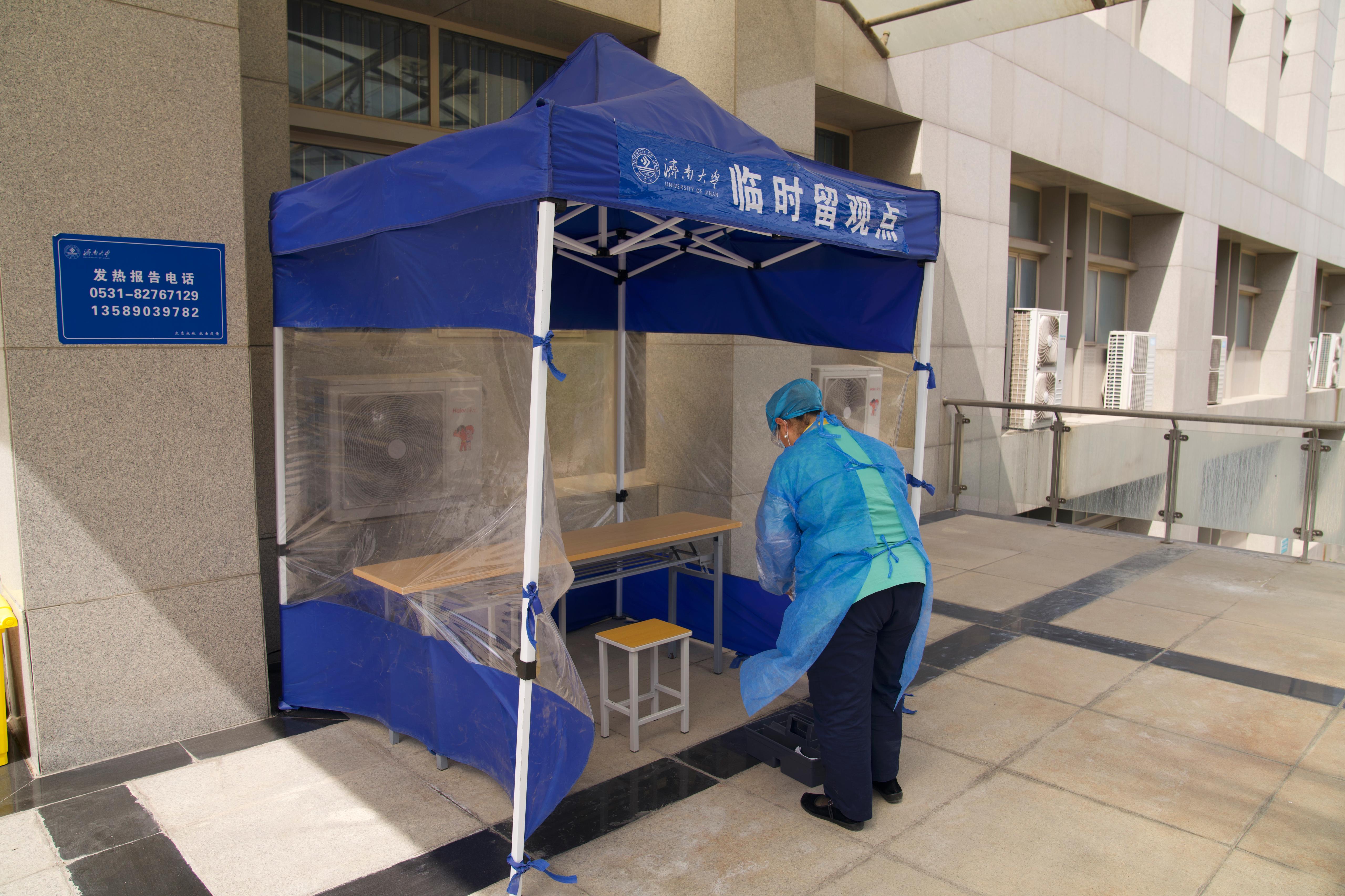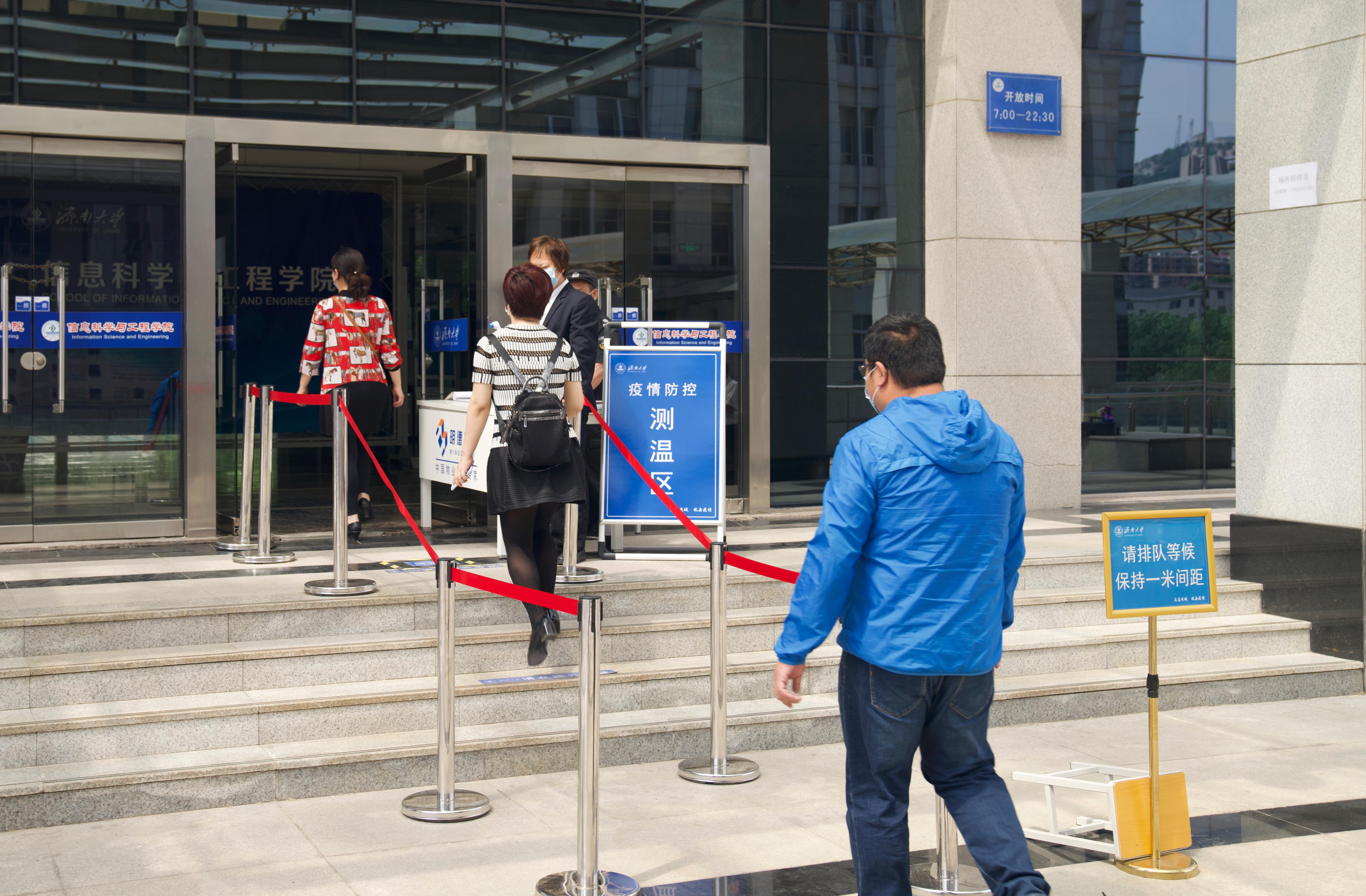 演练中,学院按照相关要求,对第12教学楼入口、实验室等重点场景进行了现场模拟,并对每个场景中可能出现的突发情况进行应急处置。若出现体温检测异常或自感异常学生,从接报“异常”学生开始,学生辅导员、场地联络员、性吧