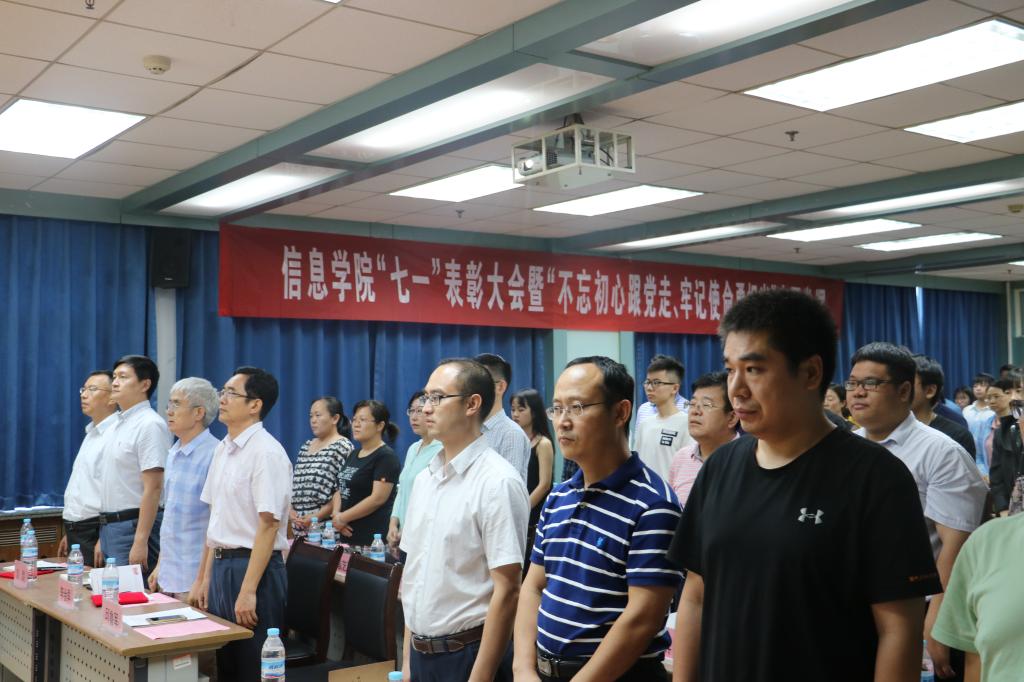 党委书记邱鲁军、党委委员、副院长陈贞翔、各党支部书记、受表彰党员、2019年上半年新发展党员及师生党员代表共同参加大会。大会由性吧