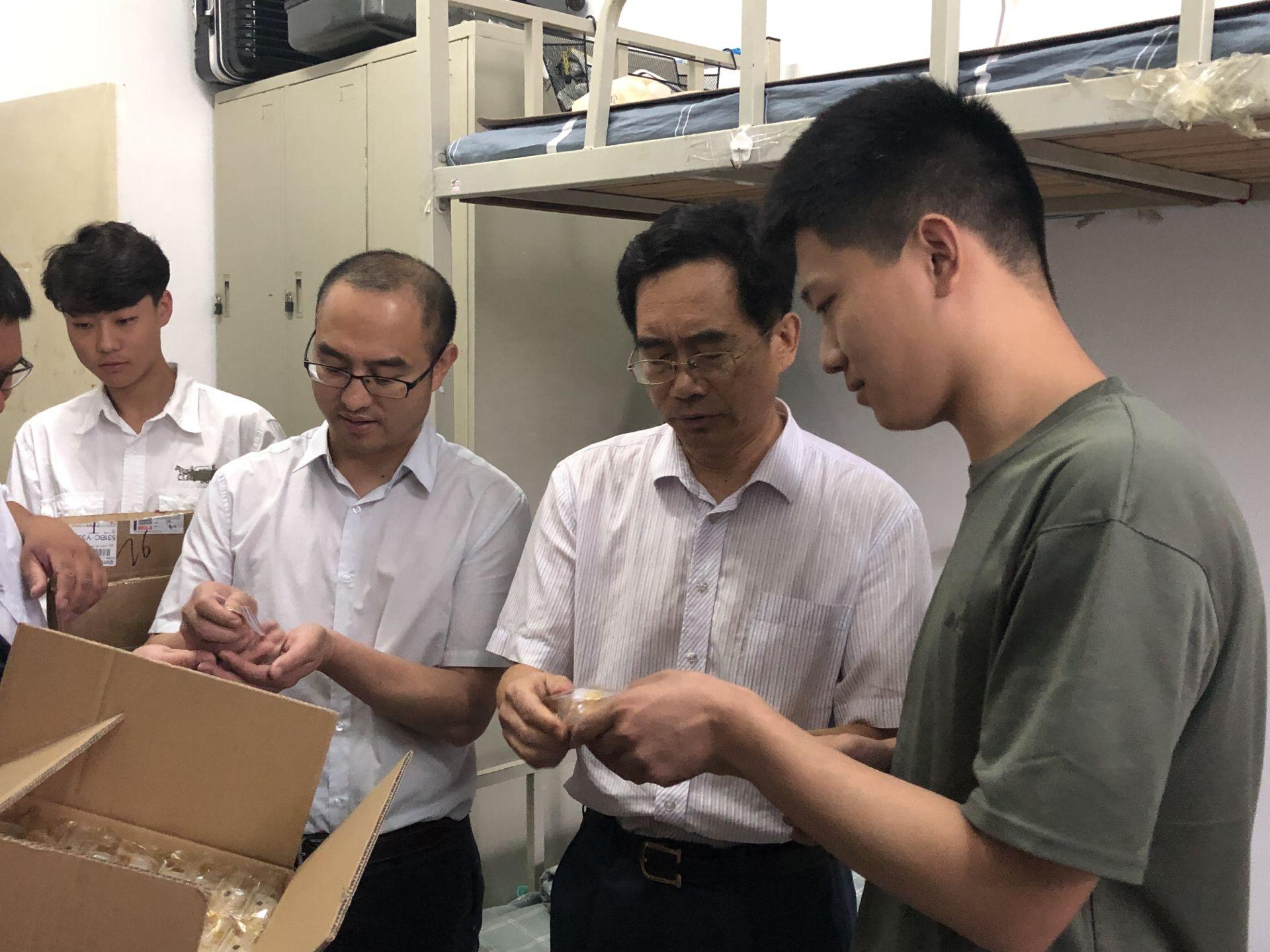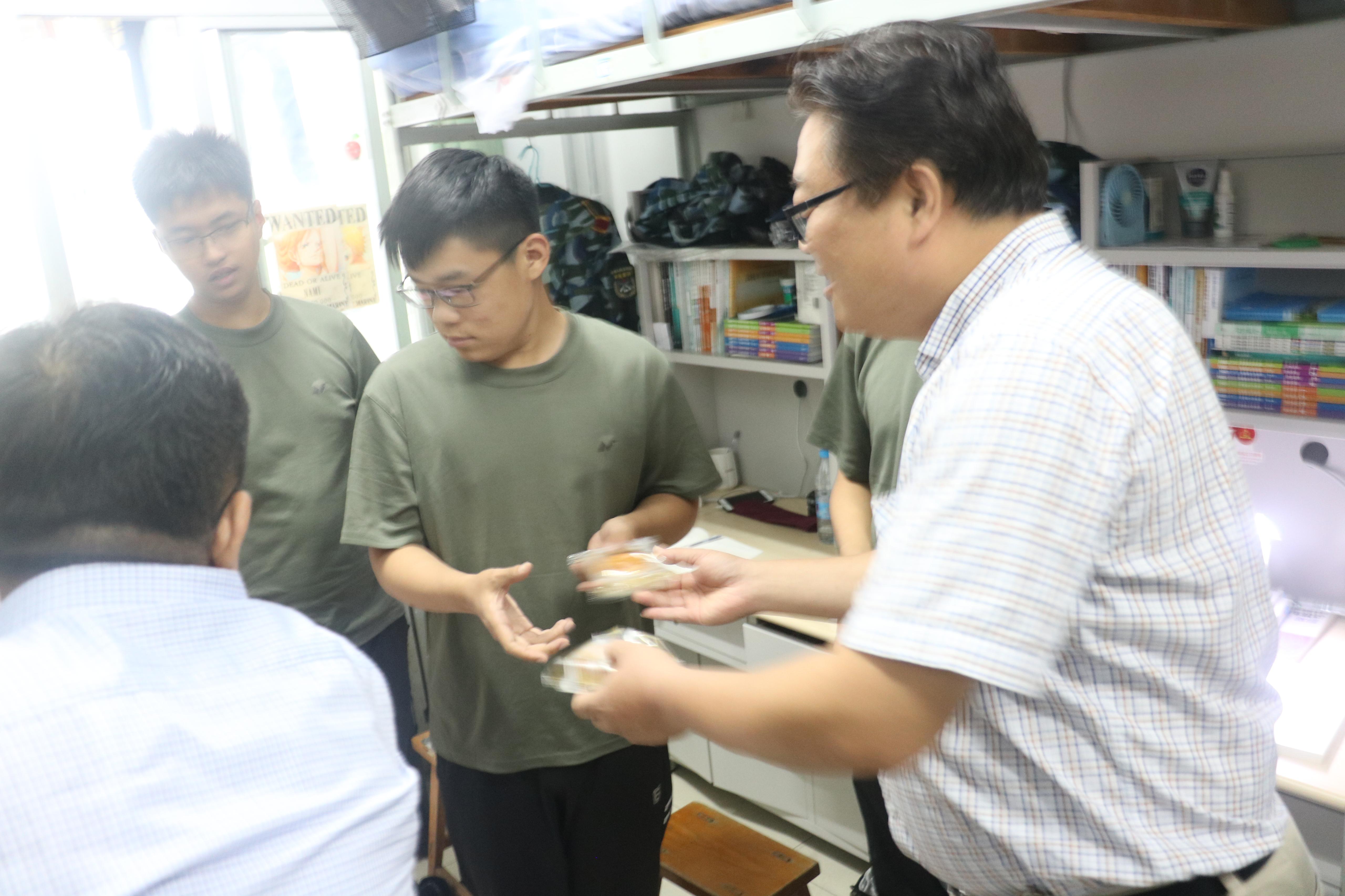 党委书记邱鲁军、院长陈贞翔、正处级组织员季竹君以及学生工作办公室的相关老师走进学生宿舍,为全体新生和班助们送上了属于他们的“济大月饼”和性吧