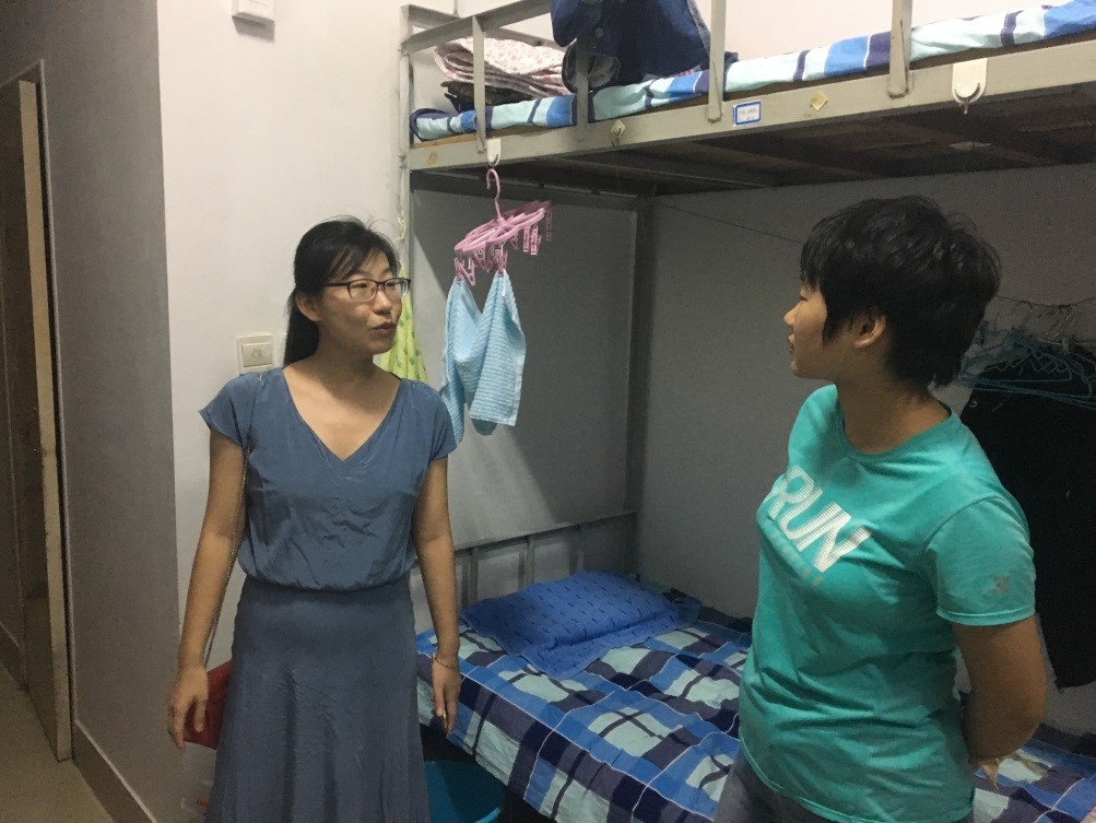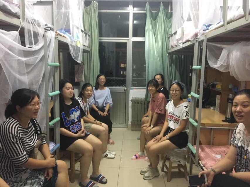 新装修的寝室宽敞明亮,大部分新生已经开始自行整理床铺,老师们也细心地为他们指出了军训内务检查时可能出现的问题,强调了军训内务规范。书记鼓励同学们大学期间要认真学习,为将来就业打好基础,扎实的学习可以赢过所有的“最难毕业季”和“最难就业季”,性吧