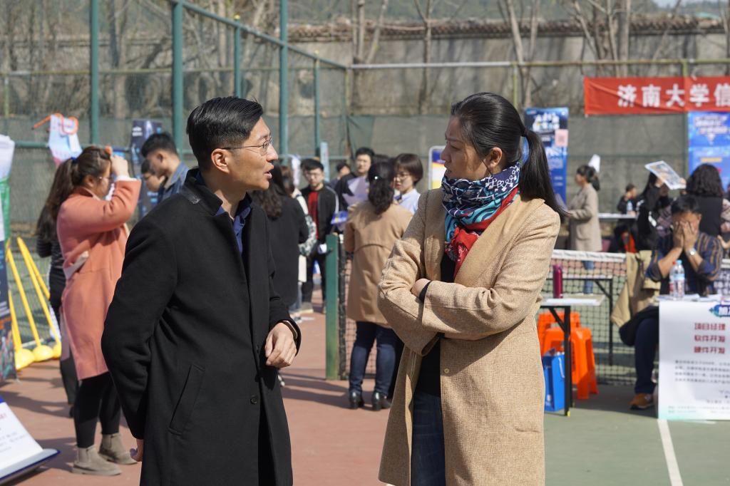 党委书记邱鲁军、党委副书记董晓宁,济南大学就业指导中心程涛副处长来到招聘现场与招聘单位和毕业生进行交流,深入了解企业需求和毕业生求职意向。