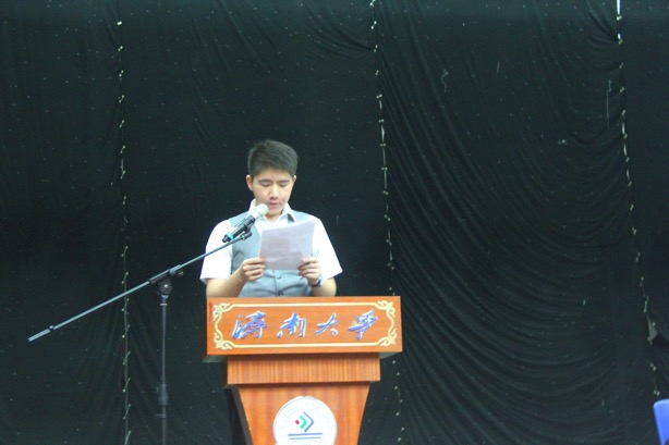 优秀学生代表杨震代表全体在校本科生发言,与在座的学弟学妹们分享了该用怎样的心态去迎接济大生活。他说,在信息性吧