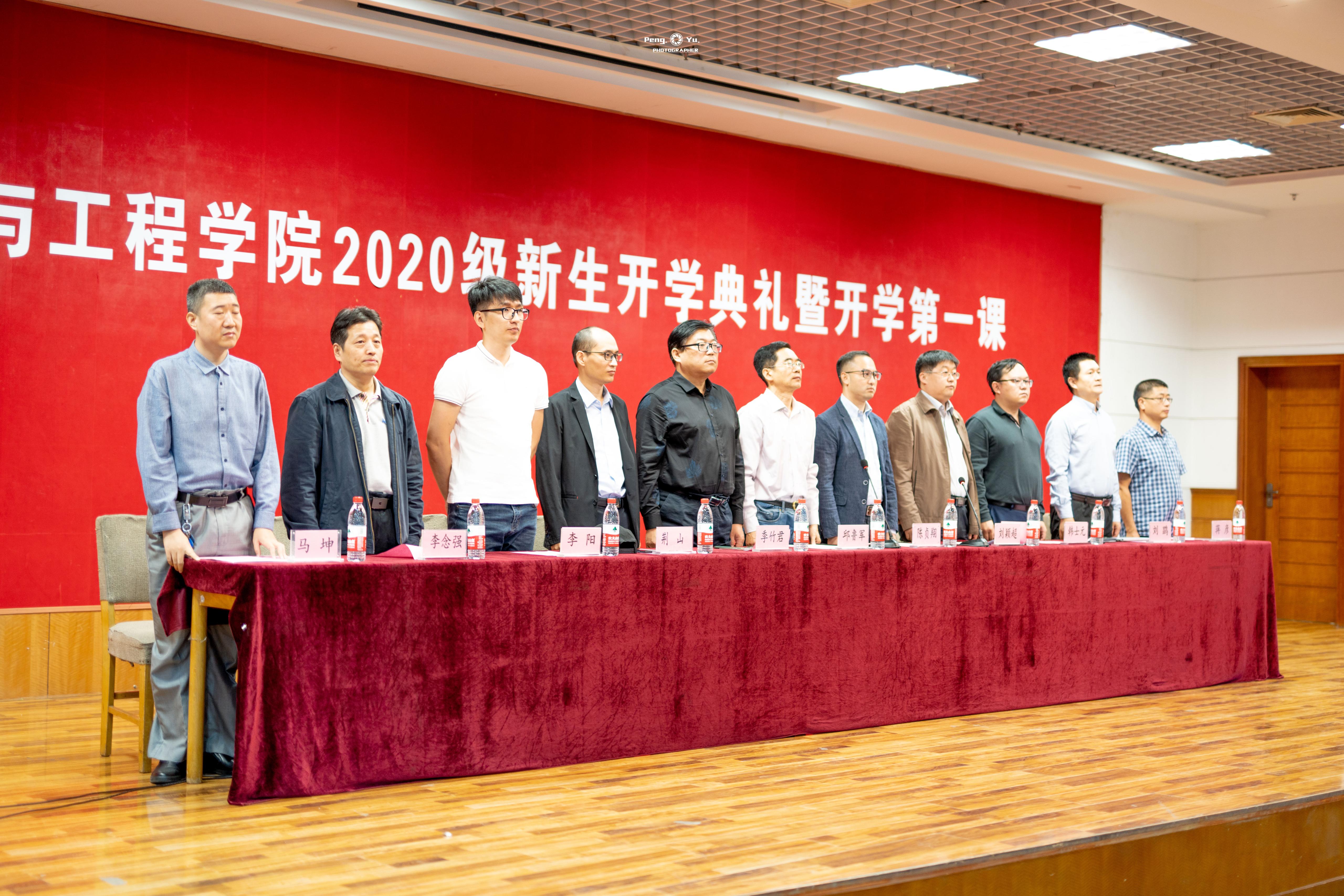 党委书记邱鲁军,院长陈贞翔,正处级组织员季竹君,党委副书记、副院长刘颖超,副院长荆山,副院长韩士元,各系系主任,学生工作办公室相关老师以及2020级全体新生参加开学典礼。典礼由党委副书记、副院长刘颖超主持。
