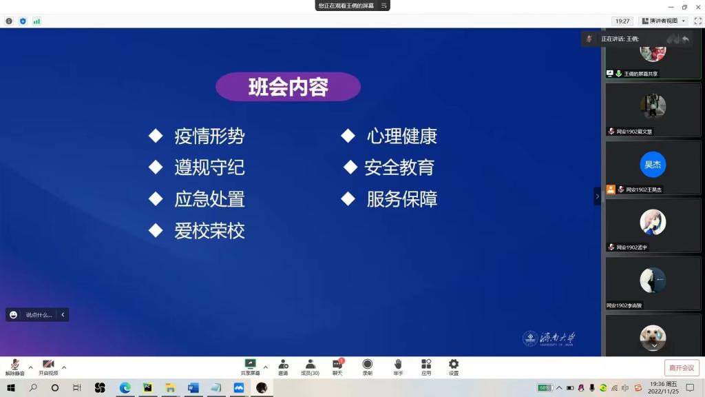 疫情防控工作。定期召开疫情防控研判会议,及时传达学校疫情防控相关要求,听取各年级工作情况汇报,查找存在的问题和漏洞,进一步分析研判形势,部署近期疫情防控工作。各年级召开疫情防控主题班会,传达新冠肺炎疫情防控政策、学校防控举措和应急处置要求,引导同学们自觉遵守防疫要求,同心抗疫。