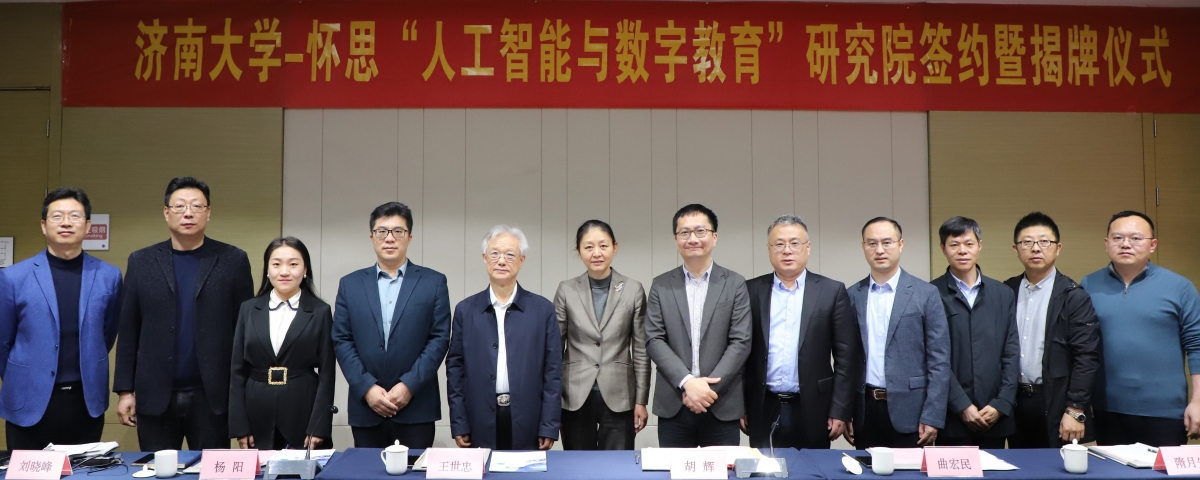 3月14日上午,济南大学-山东怀思“人工智能与数字教育”研究院签约暨揭牌仪式在济南举行。济南市科协副主席胡辉、中国电子劳动学会校企合作促进会副会长王世忠、中宏网山东CEO曲宏民、山东怀思人工智能科技有限公司(以下简称“山东怀思”)总经理杨阳出席仪式,济南大学副校长黄加栋,科技处、教务处、性吧