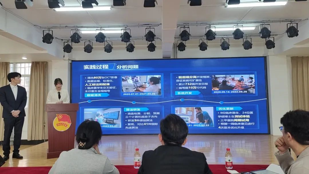 团队成员通过广泛查阅文献及实地调研,根据临床反馈研发出首款眼底疾病个体化精准诊疗辅助系统,该系统可以智能分析三维眼底影像,快速筛查眼底疾病并定位生物标记物,精准量化36种组织及病变的影像指标,预测疾病演进方向,辅助医生制定精准有效的个体化治疗方案,长期追踪监控病情进展,降低致盲风险,减轻医患负担,为“AI”赋能眼科诊疗提供技术支撑,助力“十四五”眼健康事业蓬勃发展。