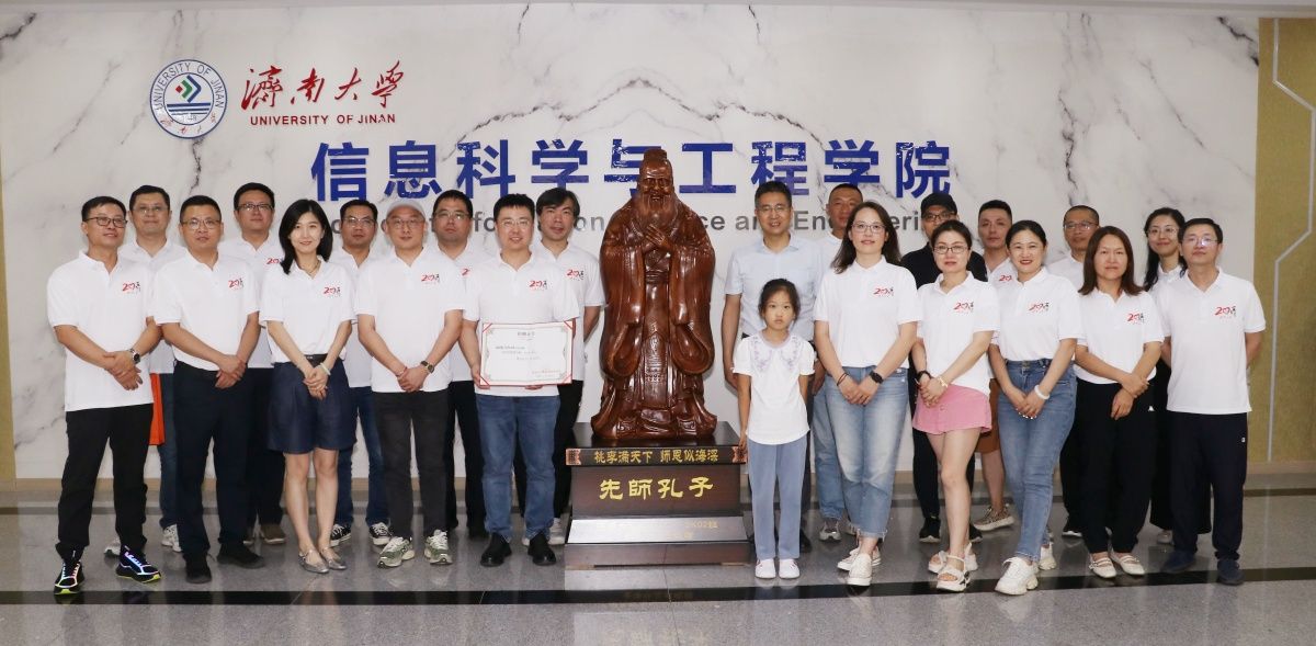 活动最后,电信2000级校友捐赠孔子像揭幕仪式在7楼大厅举行。夏卫东和校友代表应宏光共同为孔子像揭幕,荆山向校友颁发捐赠证书。夏卫东向校友们的慷慨表达由衷的感谢,他表示性吧