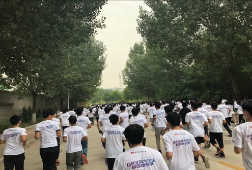 分别有4人和68人参加竞速组和健身组,全程为十公里和五公里。运动员们身着红白色队服,从图书馆北侧出发,沿线围绕济大高速一到两圈返回起点。漫长的一万米路程真正能考验一个人的耐力和决心,激烈的竞争更激发了前进的动力。秋季的济南略带寒意,一路奔跑的运动员们却早已汗流浃背,和同伴的距离也因体力的差距逐渐拉开,虽然一圈下来胜负已分,但每个人都不想中途放弃,依然尽最大努力挑战极限、超越自我。到达终点后,运动员们已是非常疲惫,走到场边调整呼吸、放松肌肉,随后,两组队员有序排队领取完赛证书,纷纷在主题墙前拍照留念。