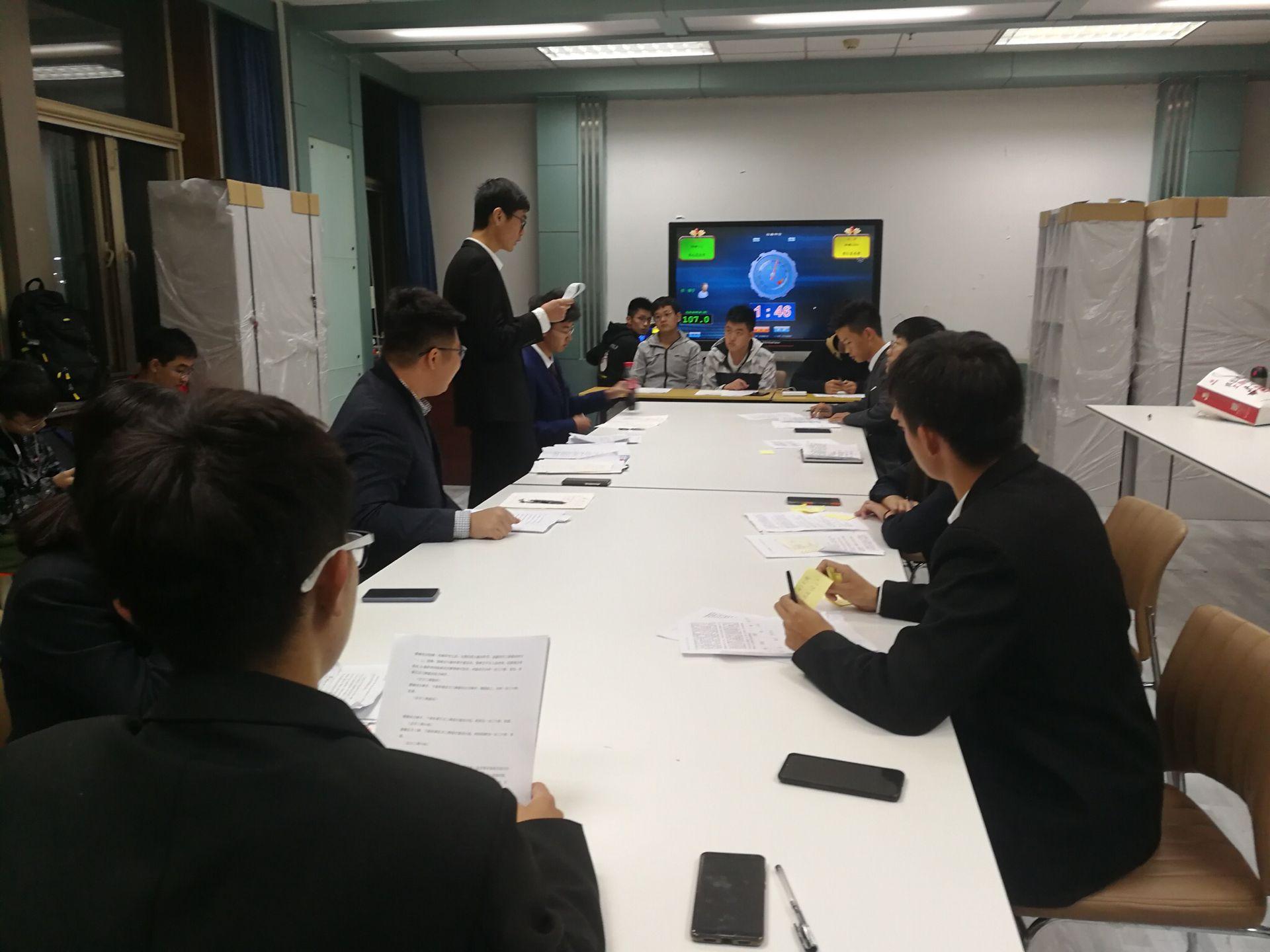 和初赛不同,十进四的比赛采用黄金联赛赛制,整个赛程更长,规则更加复杂,对选手是更大的考验。第一场比赛正方电子1905班“保护弱者是社会的倒退”,反方电子1906班“保护弱者不是社会的倒退”,比赛邀请到了信院辩论队的几位优秀学长作为评委。晚上七点,十进四的揭幕战在一片期待声中正式开始,主席张兴磊首先宣读了赛场注意事项及相关事宜,可能是因为进行到十进四阶段比赛压力有所增大,且赛制有所改变,选手们开始都有些紧张,但很快就完全投入到了比赛当中,言语犀利,金句频出,特别是盘问阶段,双方三遍步步紧逼,以一人之力驳对方三人,大有诸葛亮舌战群儒之势。最终在经过评委点评过后,比赛结果揭幕,电子1906班取得了最终的胜利。