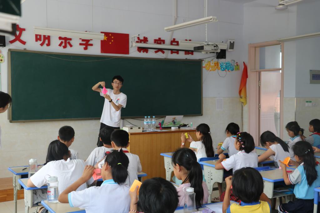 下午,备受期待的手工折纸课拉开了序幕,折纸课上,志愿者教小朋友折了“带翅膀的爱心”。志愿者们仔细地给小朋友一步一步讲解折“爱心”的步骤,小朋友也认真地按照步骤进行折叠。很快,孩子们都叠出了一个个的小爱心,并在爱心上写下了自己想对家人说的话。看着孩子们开心活泼的笑脸,满满的自豪感和成就感也浮现在了志愿者老师们的脸上。