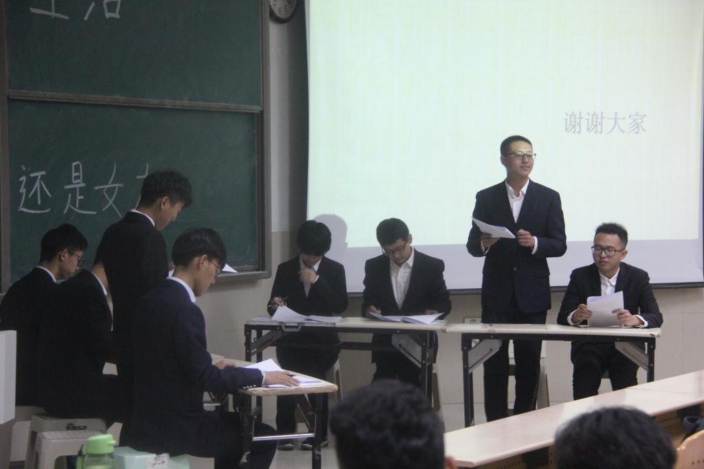 为反方,认为“好女友更重要”,这场“女友”和“基友”间的战争一触即发,现场火药味十足。正方一辩首先立论,认为基友可以给予全方位的陪伴,反方二辩拿梁山伯与祝英台的爱情故事举例反驳,正方三辩另辟蹊径,认为两人是以基友是我身份相识,反方三辩抓住机会,单刀直入,以“梁祝是以恋人结束”论证自己的观点。两方队员引经据典,结合自身体验,用幽默巧妙的语言一步步化险为夷,引来了场下同学的阵阵欢呼和掌声。第二场的辩题是“人性本善还是本恶”,信息性吧