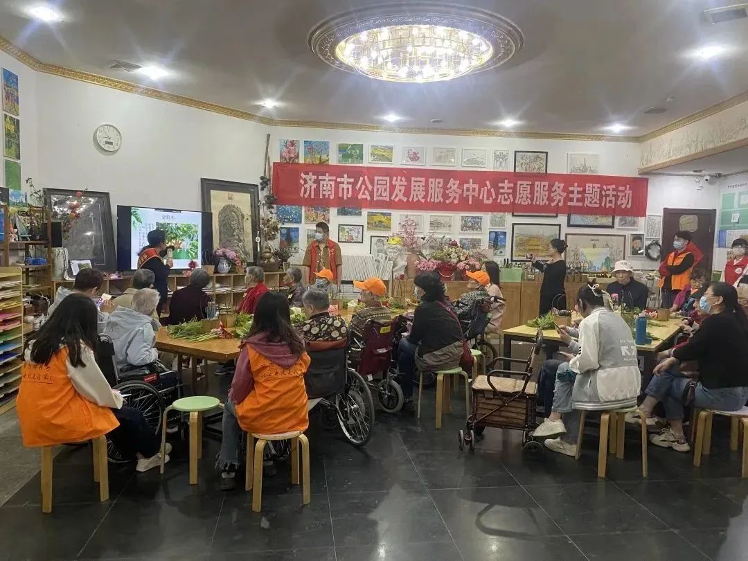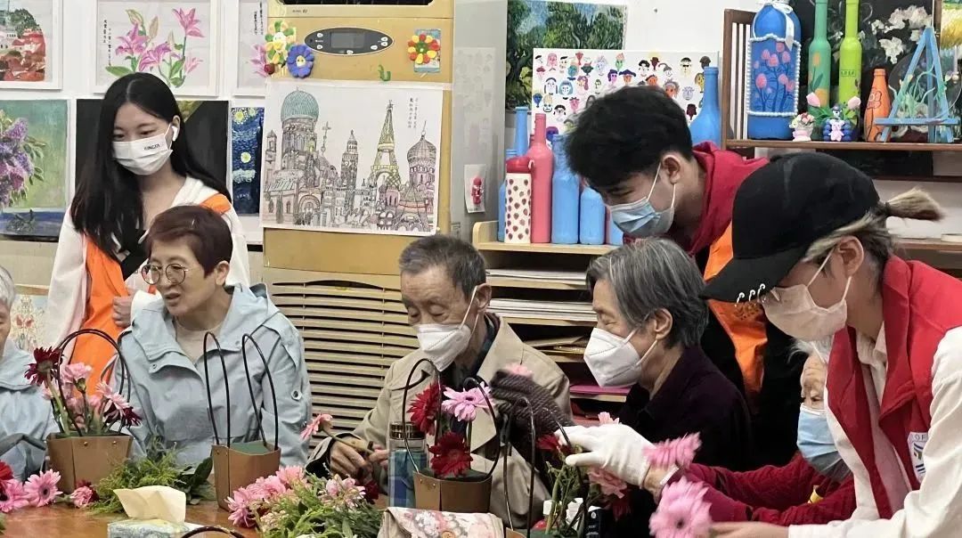 活动伊始,志愿者们帮助中山公园工作人员向老人们介绍花卉的品种和养护方法,并与老人们一起制作精美的插花作品。志愿者们推着老人参观公园中展出的物品,与老人们一起欣赏公园美景并学习了解中山公园博物馆的历史。