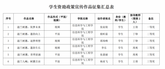 将以此次比赛为契机,进一步加强资助政策的宣传力度,让更多的学生了解国家和学校的资助政策,为实现中华民族伟大复兴的中国梦贡献自己的力量。