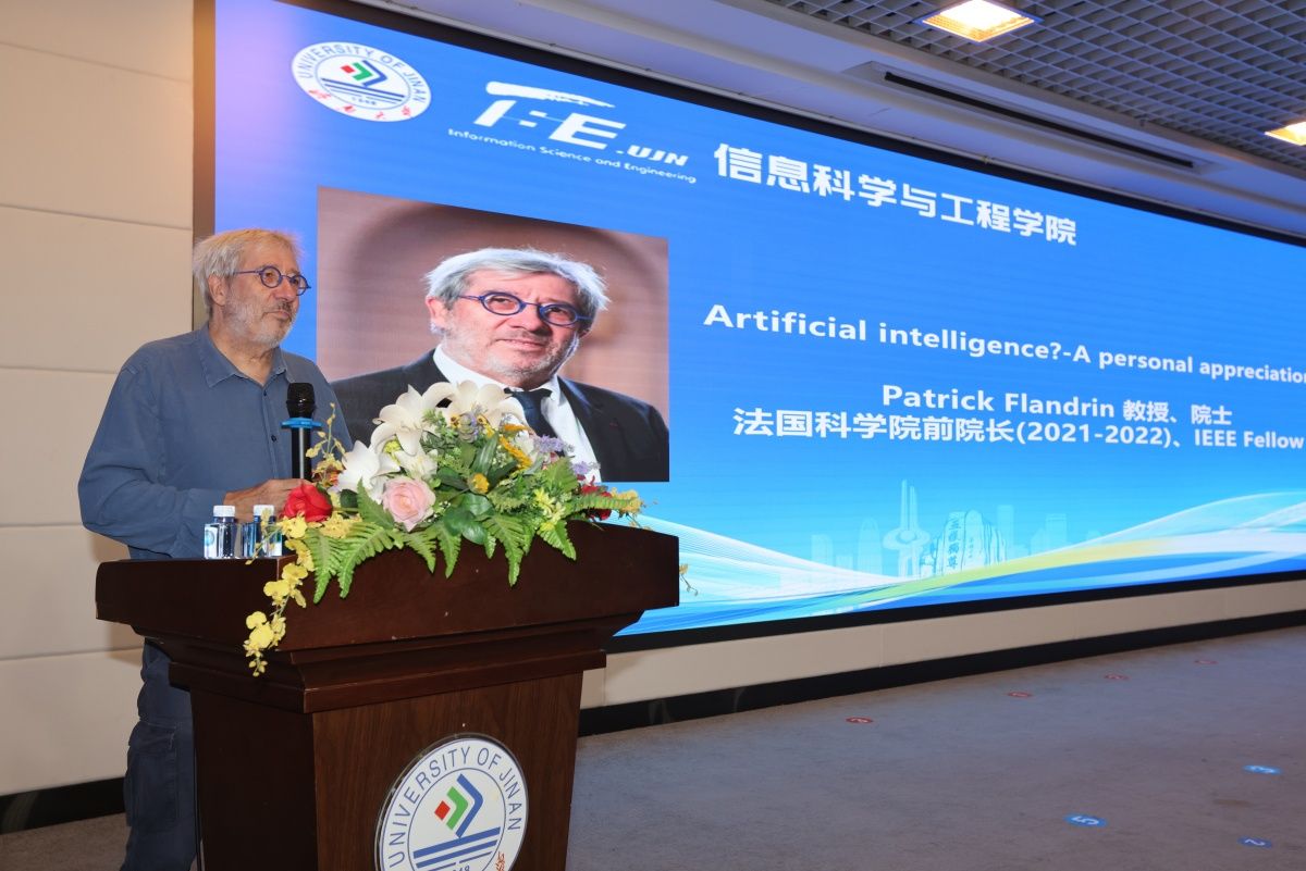 Patrick Flandrin院士感谢济南大学的邀请,介绍了世界AI领域近几年的最新发展情况、中法高校及科研院所近30年来的合作情况。他表示,济南大学计算机科学与技术学科已经有了很好的发展基础,希望与济南大学在相关领域进行深入合作。