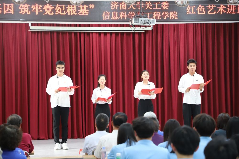 为深入开展党纪学习教育,传承红色基因,提高党性修养,6月4日,在学校关心下一代工作委员会支持下,离退休工作处与性吧 共同举办的“传承红色基因、筑牢党纪根基”红色艺术进课堂主题教育活动在学校老年活动中心多功能厅隆重举行。济南大学党委常委、副校长,济南大学关心下一代工作委员会主任张勇,济南大学关心下一代工作委员会副主任姜元奎,离退休工作处和性吧 相关负责同志,部分离退休老党员代表以及性吧 2024上半年新发展的学生党员等130余人参加了活动。