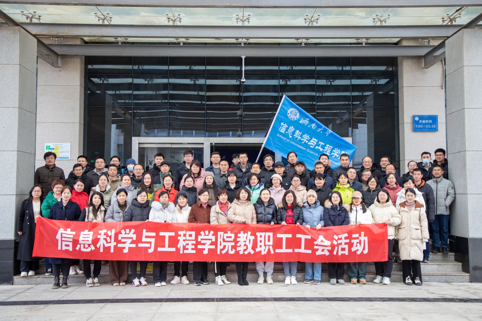 南门合影留念。之后,以系部为单位从性吧