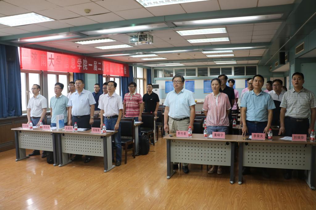 会议伊始,全体起立奏唱校歌《你我同行》。