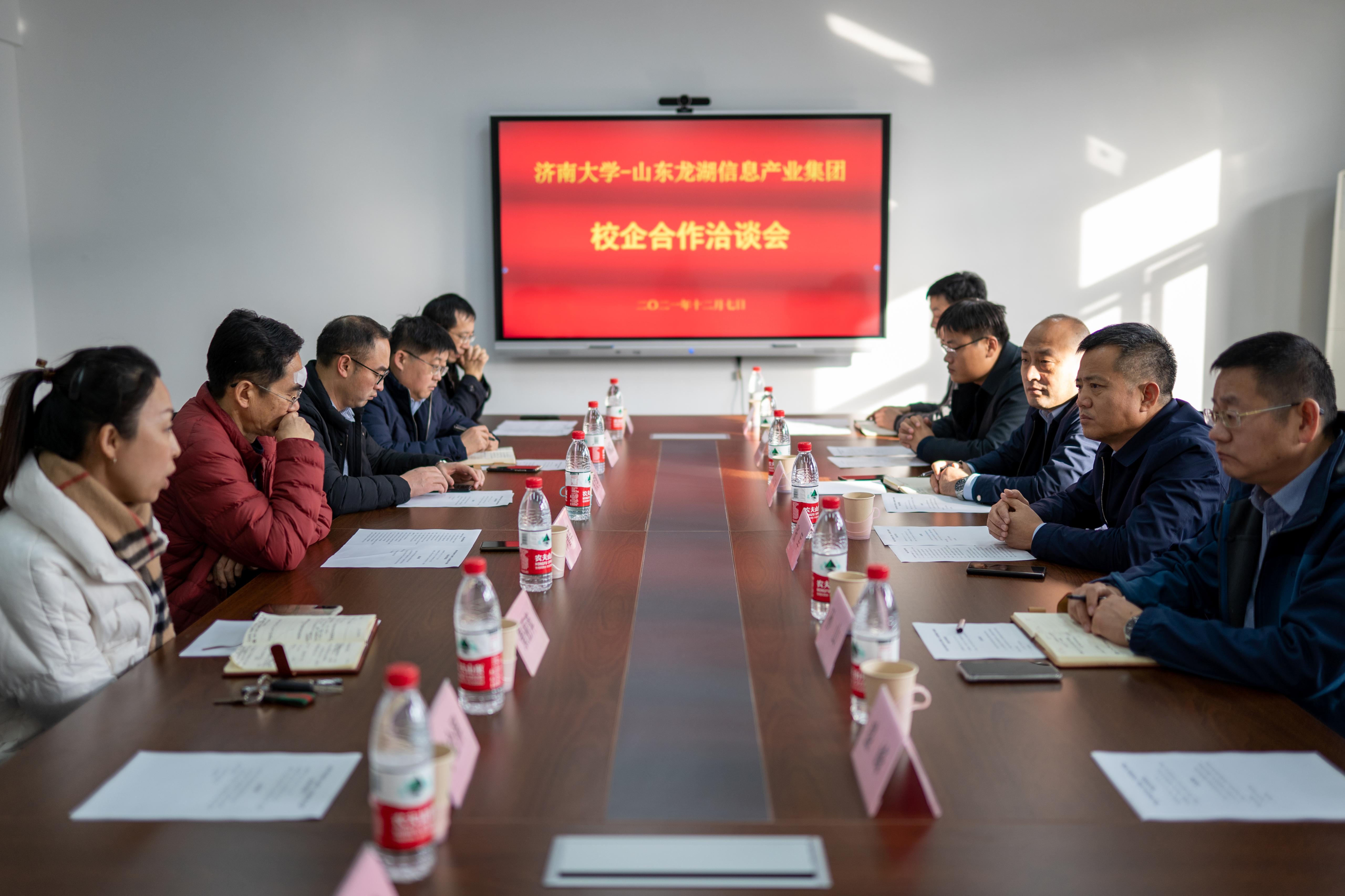 -山东龙湖信息产业集团校企合作洽谈在第12号教学楼704会议室举行。山东龙湖信息产业集团党委书记、董事长张军,山东龙湖信息产业集团副总经理孙山,济南大学合作发展处处长卢旺,性吧
